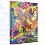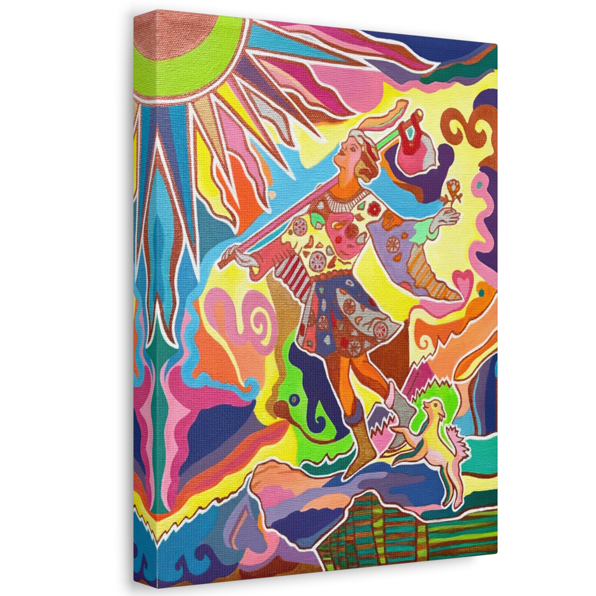 The painting on the gallery canvas continues on the sides for a beautiful display and is protected with varnish to ensure its vibrant colors last. The canvas paper painting is also protected with varnish for longevity, and the color pens artwork is protected with a glassine cover.